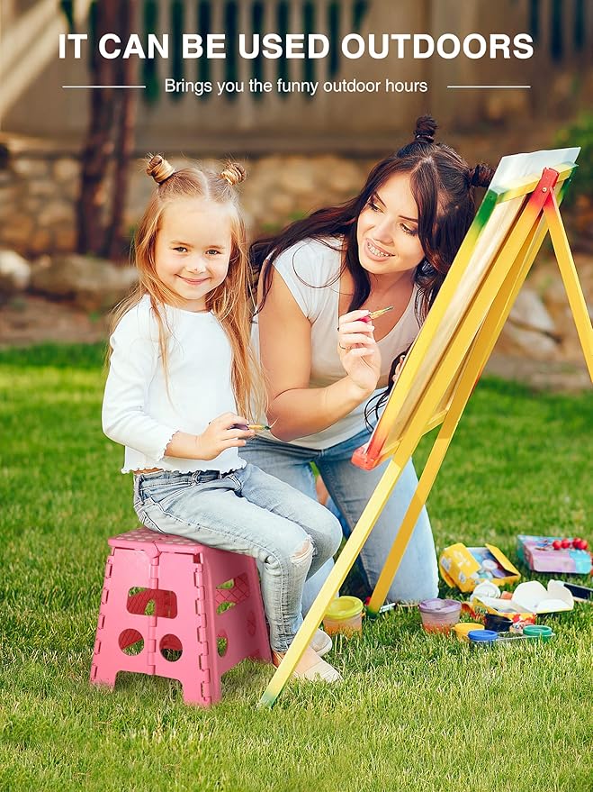Dyforce Non-Slip Folding Step Stool - 13 inch Height Heavy Duty Foldable Stool for Adults Kids, Plastic Step Stool Camping Stepping Stool - Pink