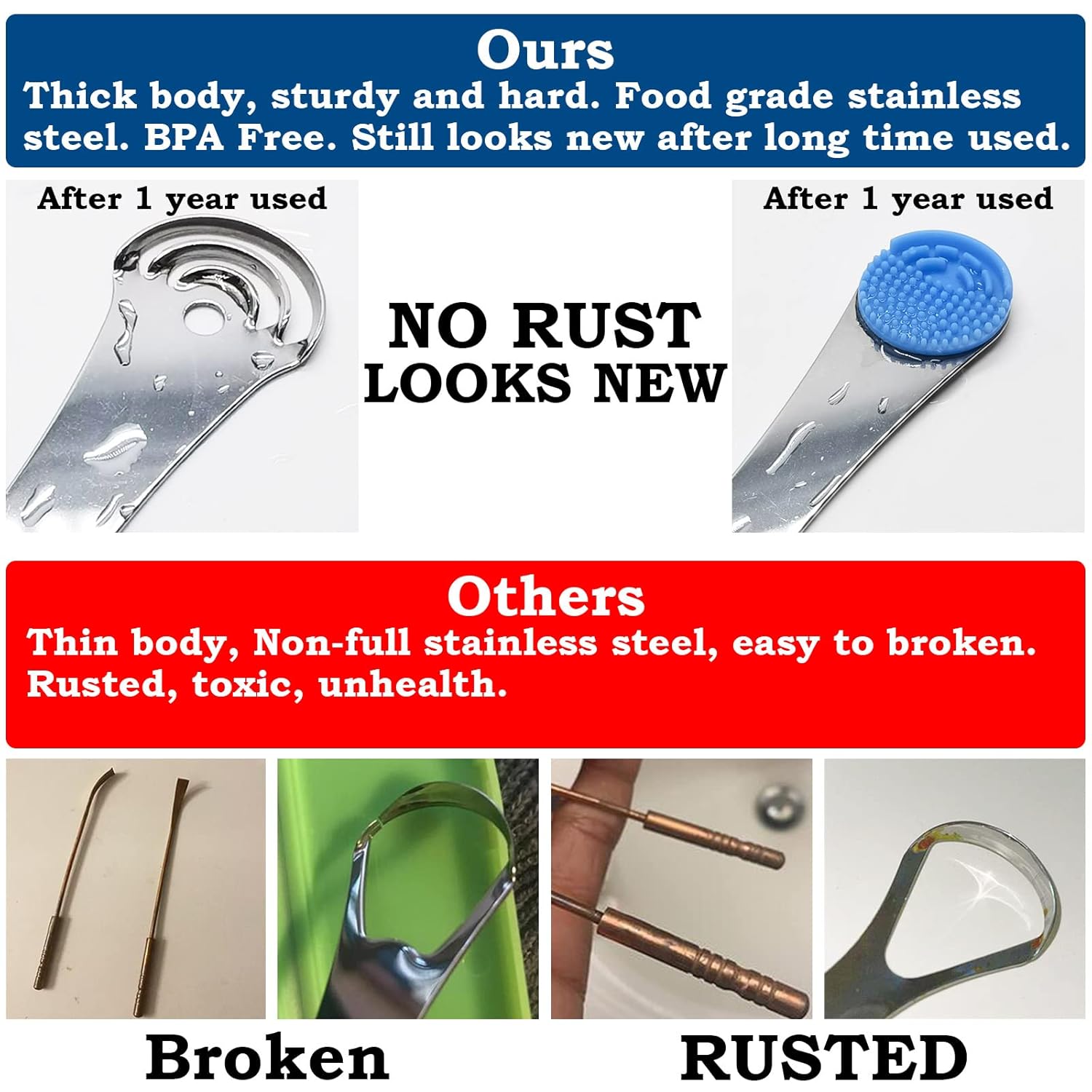 - 【Reduce Bad Breath and Get Rid of White Tongue】Moosec professional tongue scraper is the best tongue scraper for lousy breath and white tongue with functional heads on both sides. Not only freshens your breath, but also brings you confidence. It is recommended to hang it after use to keep it dry.