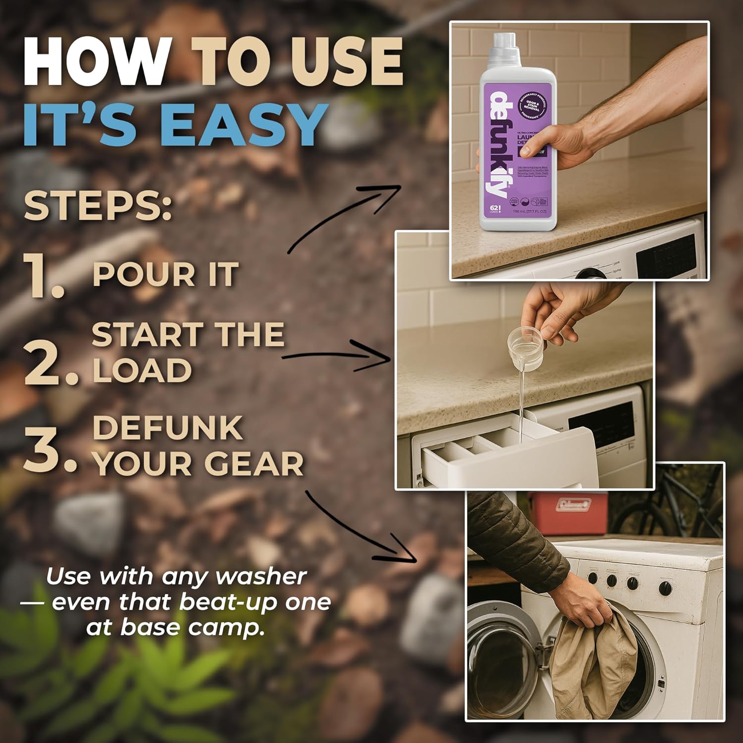 - š£š¼šš²šæš³šš¹ šš®šš»š±šæš š¦š¼š®š½: Inside one small capful of liquid detergent for laundry you get an industry leading stain remover, odor remover / eliminator & laundry stripper in one! While powerful, Defunkify's laundry detergent liquid remains safe for sensitive skin, all fabrics & clothing types (including activewear & outdoor gear), & is environmentally friendly & eco-conscious w/ our patented 'ProvenSafe' process & formula. Pack includes 2-37.7 FlOz bottles/ 124 Loads of detergent.