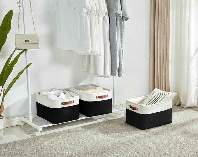 DECOMOMO Storage Bins Fabric Storage Baskets for Shelves, Linen Closet Organization Toys Nursery (Black and White, Large - 4 Pack)