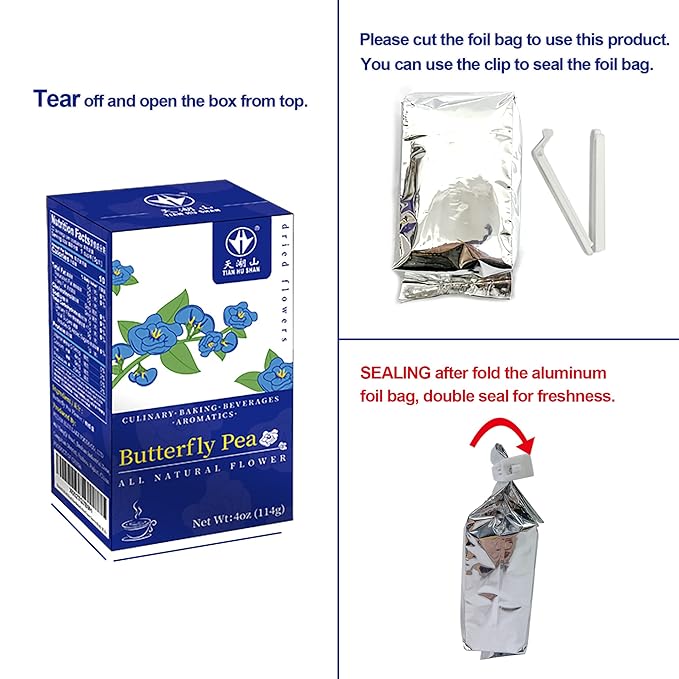 - Pure Ingredients: This butterfly pea flower tea is made from 100% all natural ingredients, we hand-select plump, whole dried butterfly pea flowers, which undergo rigorous sorting and cleaning.