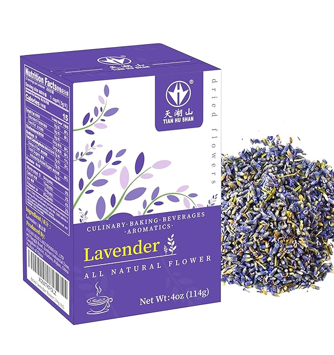 TIAN HU SHAN Dried Lavender Flower Buds, Culinary Food Grade for Baking, Fresh Fragrance, 4 Ounce, Caffeine Free Suger Free Vegan Herbal Tea, Packing in Bulks