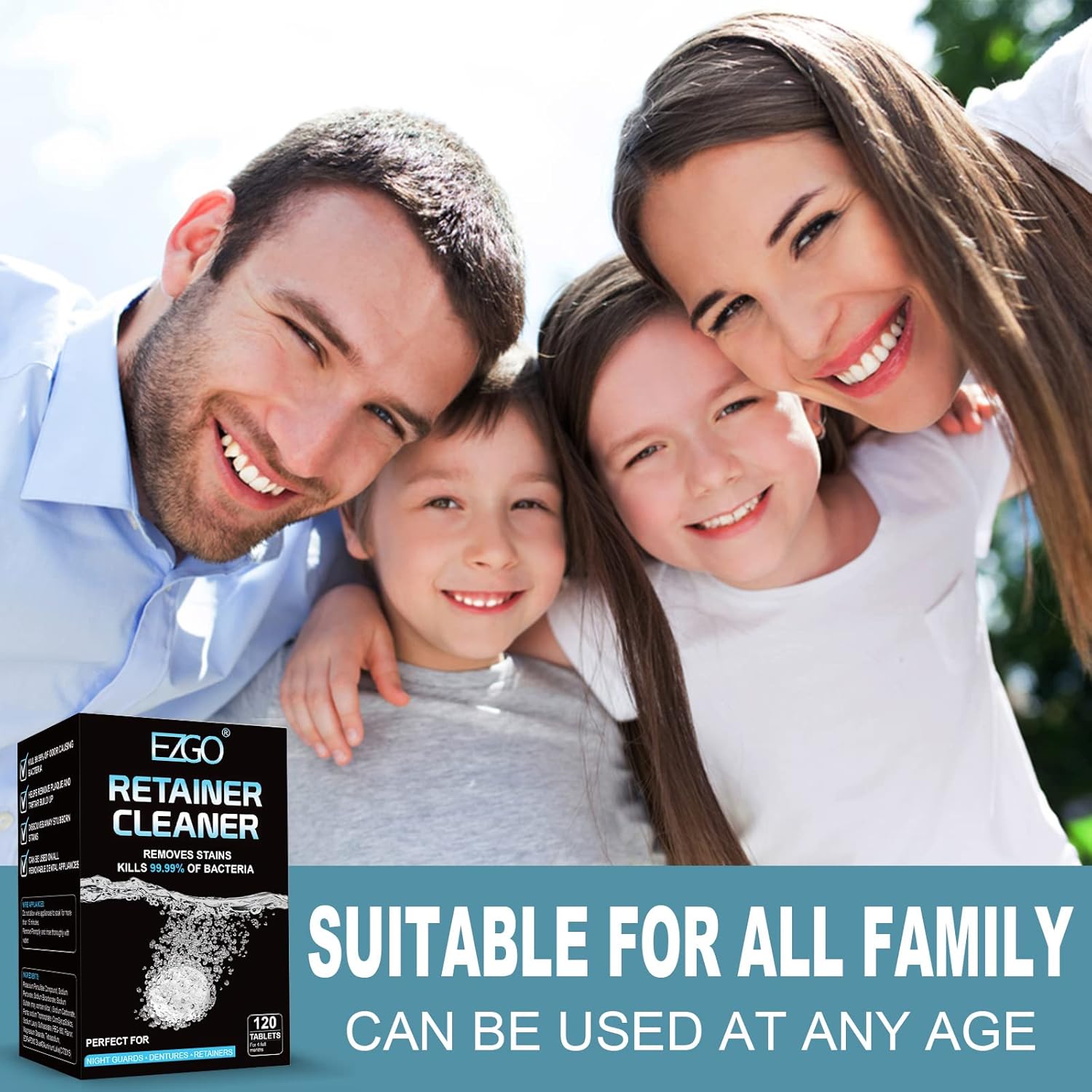 EZGO Retainer Cleaner Tablets, Denture Cleaning Tablets for Mouth Guard, Night Guard and Removable Dental Appliances, Removes Stains, Bad Odor, Plaque in 3 Minutes, 4 Months Supply (120 pcs)