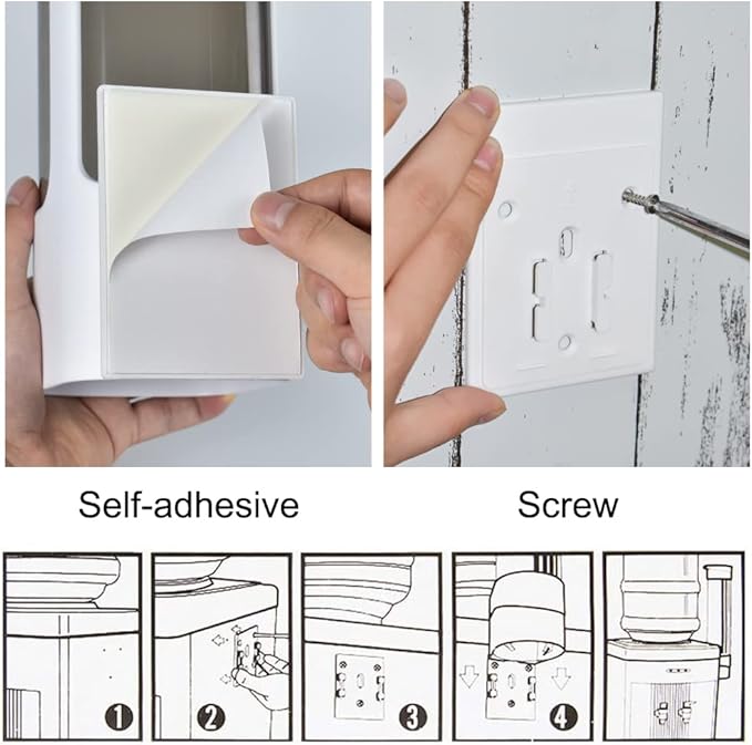 - Easy to Install: Wall mount cups dispenser comes with a strong self-adhesive mounting plate, you can use the self-adhesive plate to install the cups dispenser on a smooth surface, such as a refrigerator, the side of a water cooler. It also comes with wall-drilling screws, allowing you to mount the cup holder on rough surfaces such as stucco.