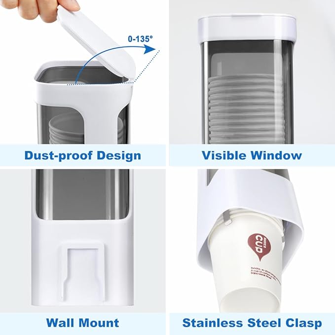 - Dust-proof Design: The cup dispenser has a lid to prevent dust from entering the cup dispenser, and also to prevent water from wetting the cup, keeping the cup clean and tidy.