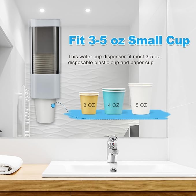 - Well Organized: Simply open the lid on the top of the cup dispenser to put the paper cups in, making it easier to organize and store the cups. Holds 30-45 cups, small cup dispenser save you room space.