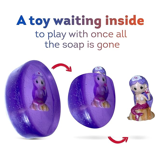 - ✅ MULTIPURPOSE CLEANING TOOL - Nice and gentle soap for kids with a surprise inside. As the soap is used up, you get closer and closer to the MERMAID INSIDE. Once the soap is all used the toy is accessible and your child gets his amazing GIRLS SURPRISE toy which helps to provide a healthy habit of hand washing.