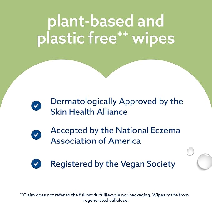 - PLASTIC-FREE*, PLANT BASED WIPES: Suitable for eczema-prone skin and allergy sufferers, WaterWipes are Dermatologically Approved by the Skin Health Alliance, accepted by the National Eczema Association of America and registered by the Vegan Society. *Claim does not refer to the full product lifecycle nor packaging. Wipes made from regenerated cellulose.