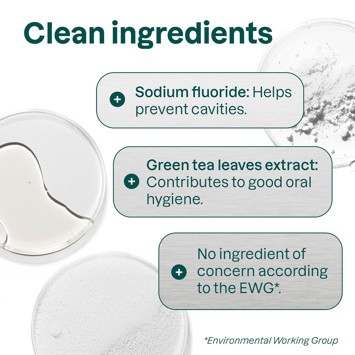 - CLEAN FORMULA: This EWG Verified toothpaste contains fluoride and is free from SLS, dyes, artificial sweeteners, and artificial flavors, for a worry-free experience.