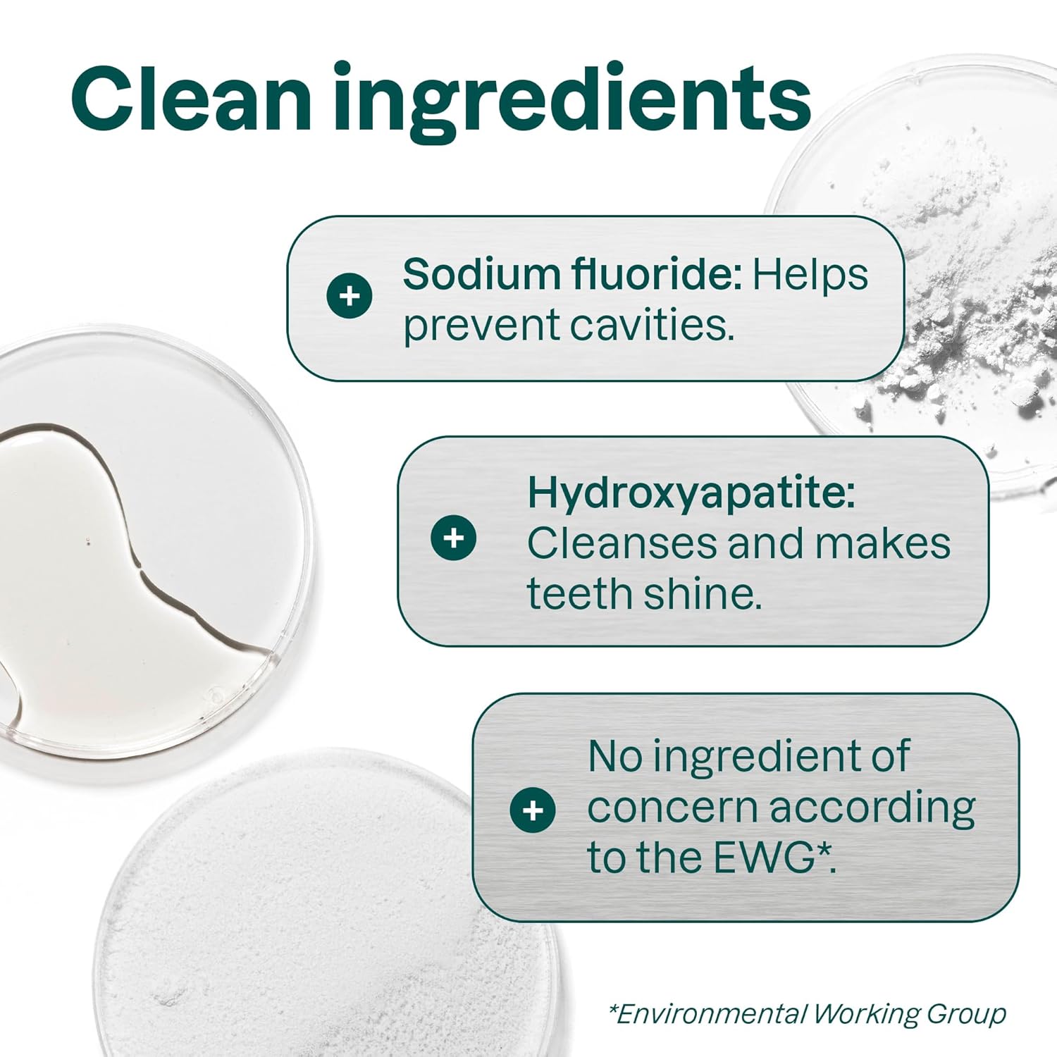 - EWG VERIFIED: This toothpaste is certified EWG Verified and made with clean ingredients that meet the Environmental Working Group's strict health and safety standards so you can feel confident that it does not contain any potentially concerning ingredients.