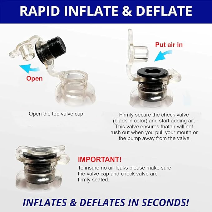 - EASY TO USE: Large 2-way valve x1; Promotes quick inflation and deflation; Be sure to fully seat the caps to maintain inflation