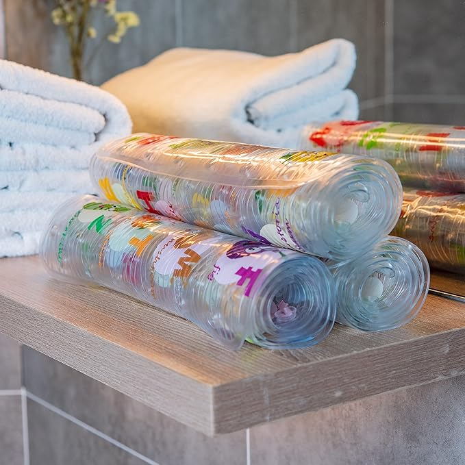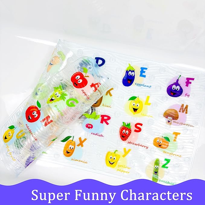 Polyvinyl Chloride (PVC) Bath Mat, Alphabet, Square, XL Size, 35x16 inch, Textured Pattern, Suction Cups - Bath Mats for Tub Kids