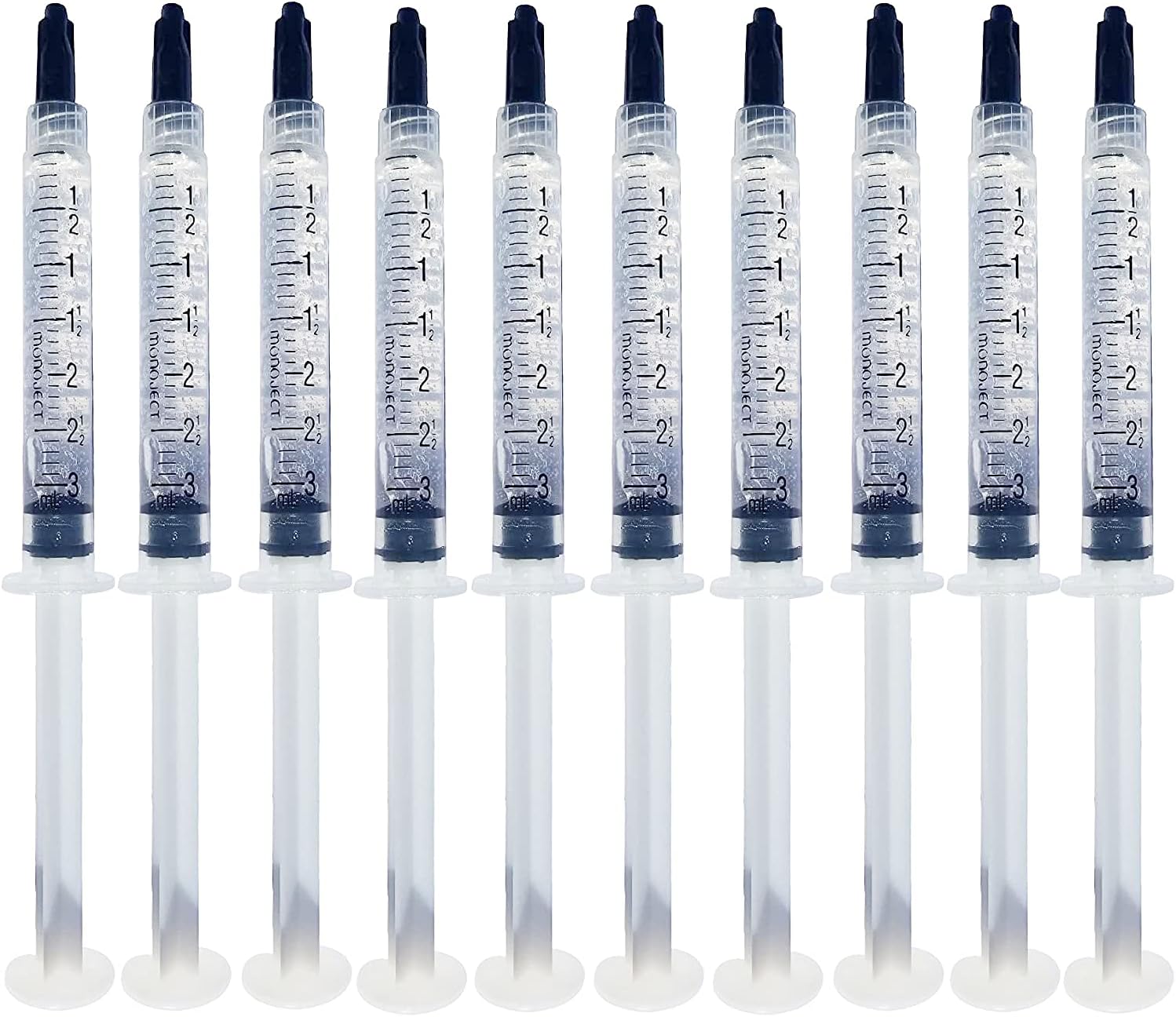 - Bright White Smiles offers 10 3 cc/ml 35% Carbamide Peroxide Teeth Whitening Gel Syringes. This is enough gel for over 30 full teeth whitening sessions. This does not come with trays. Please see our store if you are in need of trays.