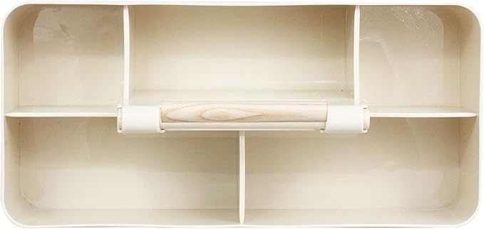 Baby Shower Caddy Plastic Nursery Portable Storage Organizer Caddy Tote for Child/Kids, Divided Basket Bin with Wood Handle for Bathroom, Dorm Room, Holds Hand Soap, Bottles, Spoons (Beige)