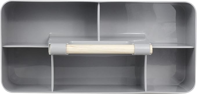 Baby Shower Caddy Plastic Nursery Portable Storage Organizer Caddy Tote for Child/Kids, Divided Basket Bin with Wood Handle for Bathroom, Dorm Room, Holdsn Bottles, Spoons, Gray