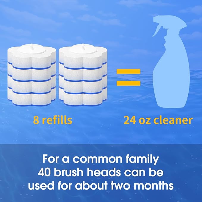 - Disposable Toilet Brush- Each toilet cleaner brush refill has a 2.5" foam sponge + scrub cloth for maximum cleaning power. Stays securely attached—one head can clean multiple toilets before disposal!