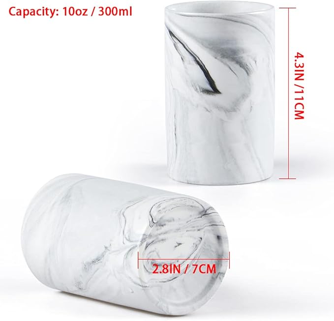 Bathroom Tumbler Cup, Ceramic Toothbrush Holder Stand for Mouthwash Rinsing, Toothpaste, Pen, Makeup Brush, Teaspoon Organizer, 10oz / 300ml (Marble Pattern)