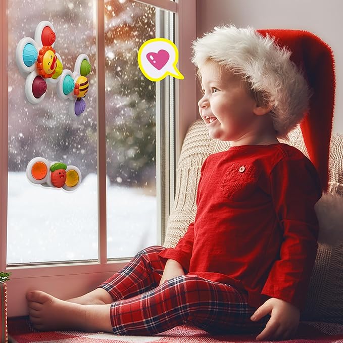 LiKee Strong Suction Cup Fidget Rotating Sensory Bath Toys for Baby Christmas Stocking Stuffers, Airplane Car Travel Table & Window Toys for Toddler Boys and Girls, 10+ Months