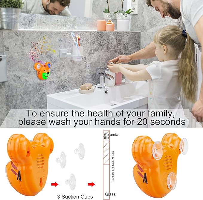 - 2 Set LED Color Indicator Light and Speaker : it will more visual and audio.,Green indicator light--Start to brush or wash, Red indicator light -- Complete teeth brush or hand wash ,It works with Kid Musical Songs to remind