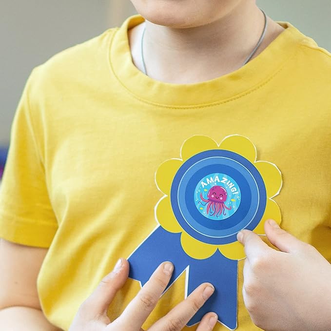 - 9 Cute FunFRENZ Designs! Uh, oh. Is that yet ANOTHER sheet of garden variety star stickers for kids or smiley face stickers? Listen, kids work hard for their rewards so we created an entirely bespoke range of 9 assorted stickers – never seen before! From the “Wow” Toucan to the “Great Effort” Dinosaur and “Amazing” Jellyfish, the kids won’t just want a reward, they’ll want to choose it themselves!