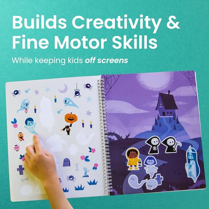 - 1st Halloween activities sticker book brand to use spiral binding to keep it flat on the table or in your kid's small lap. Innovative sticker books for kids ages 4-8 makes an amazing kids travel activity