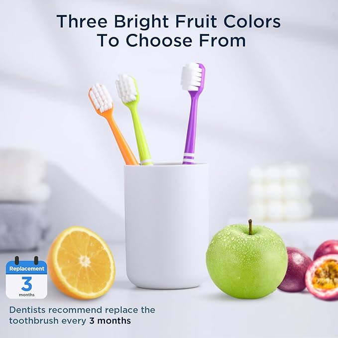 - PACKAGE INCLUDED: Comes with 6 toothbrushes (colors may vary), family pack perfectly for adults, pregnant women, and elderly. Ideal gift for a friend with severe brushing habits or gum recession. Dentists recommend replacing toothbrush bristles as soon as they begin to fray or break (usually every three months).