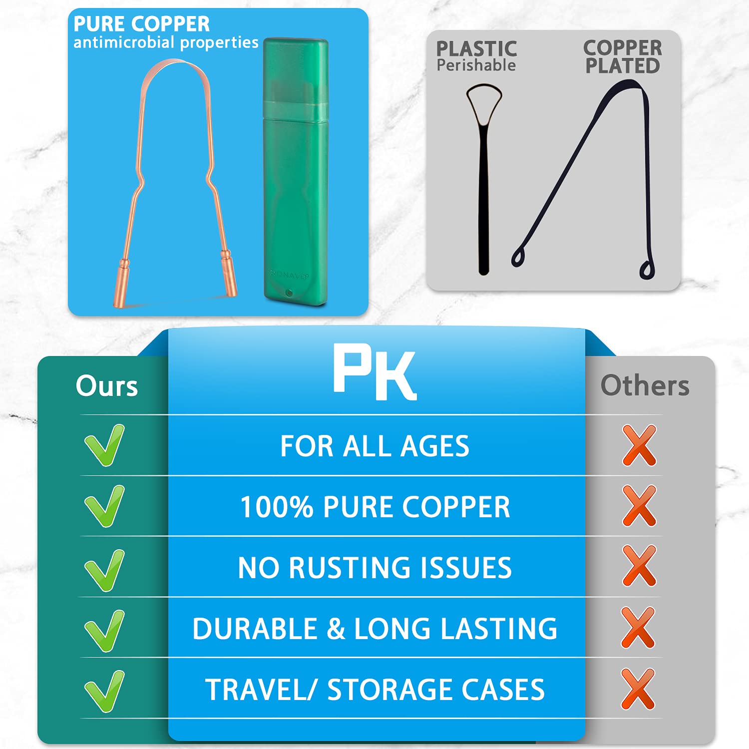 • 【Pure Copper Tongue Scraper】: The tongue scraper is an oral care product that combines Ayurvedic ideas and techniques. Ayurveda recommends using copper dental tools to improve taste and oral health. Copper has natural cleaning properties that help make tongue scraping more effective and prevent various oral problems such as bad breath, tooth decay, and more.