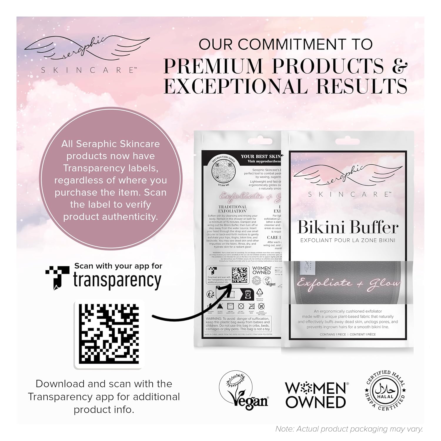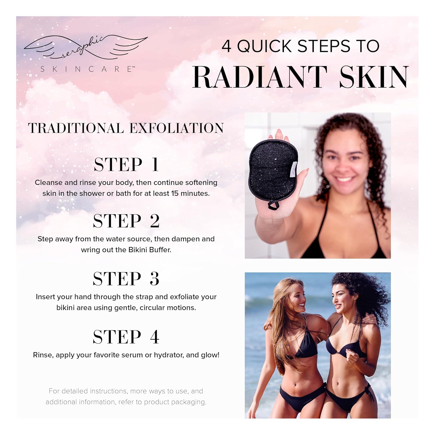 - ACHIEVE CUSTOMIZABLE EXFOLIATION – Unlike a conventional exfoliating scrub for bikini area, Seraphic Skincare’s Bikini Buffer allows you to customize your level of exfoliation based on your individual needs and skin type. Use it with a cleanser for mild exfoliation or without soap for deeper exfoliation. Check the packaging for detailed instructions and even more ways to customize your treatment!