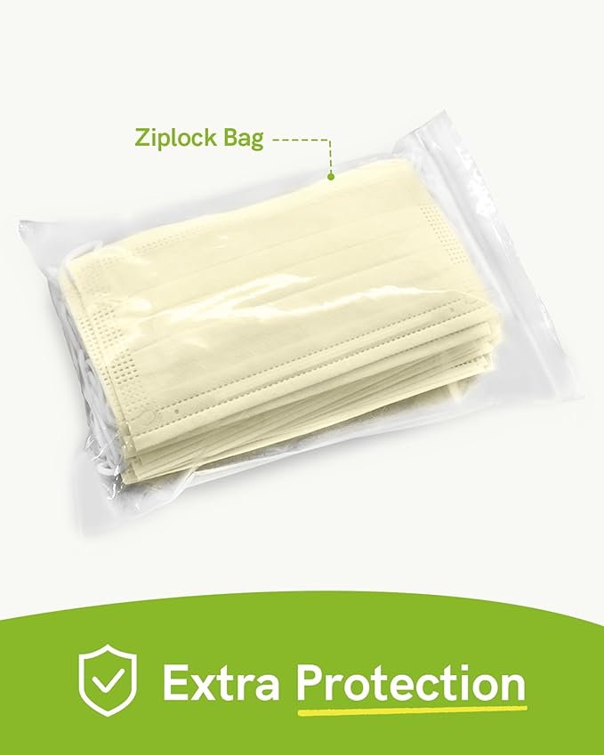 FriCARE Disposable Face Masks, 3-Ply ASTM Level 3 Medical Grade, FSA/HSA Eligible, Breathable & Comfortable for Allergy/Sun Protection, 50 Pack Cream