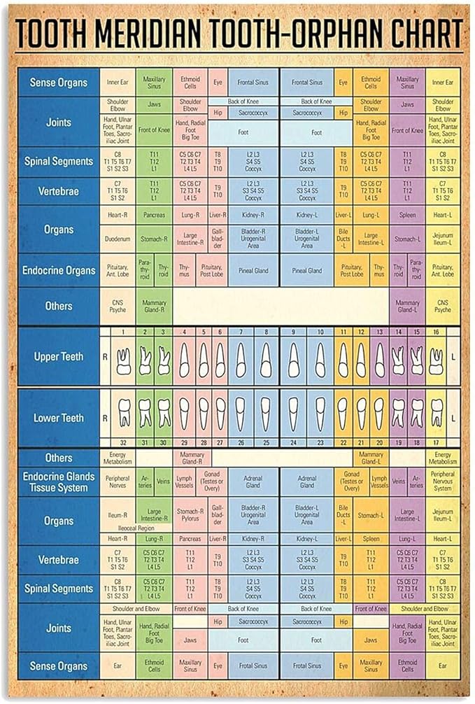 JIUFOTK Dentist Knowledge Posters Metal Signs Tooth Meridian Tooth-Orphan Chart Vintage Plaque Dental Room Decor Club Office Bathroom Wall Decor 12x18 Inches