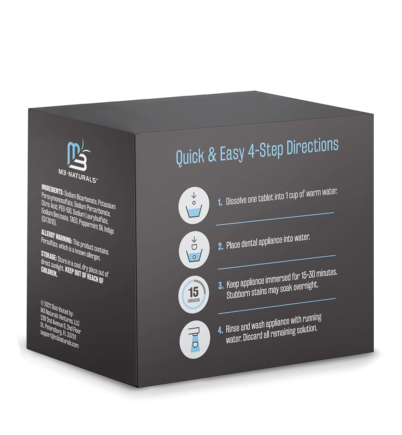 - M3 Extra Strength Cleaning Tablets are laboratory tested working to restore clarity by removing unwanted odor and buildup in every corner of any oral dental appliance.*
