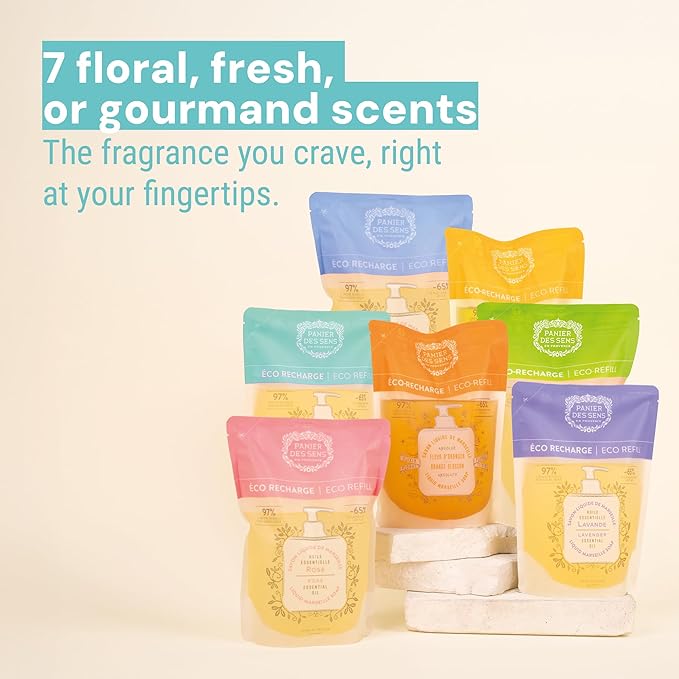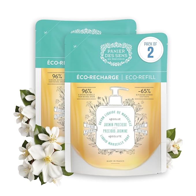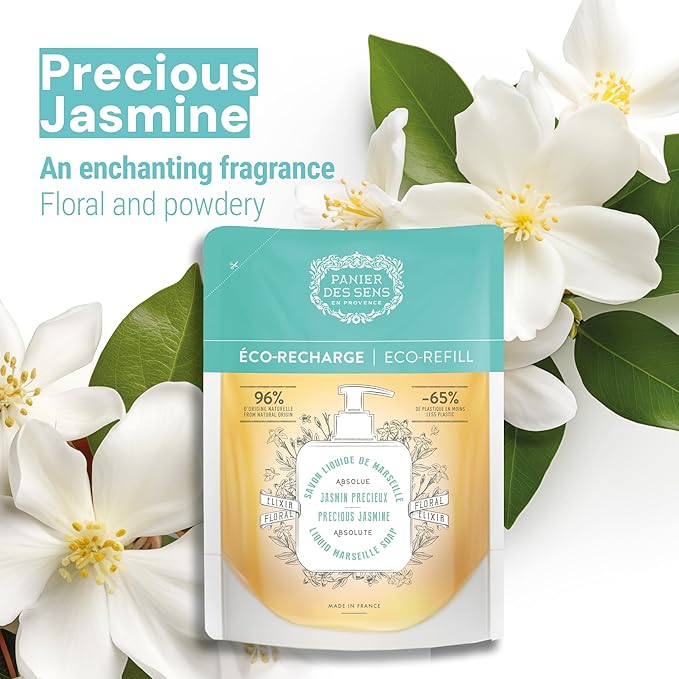 Panier des Sens - Liquid Hand Soap Refills - Jasmine Foaming Hand Soap Refill - French Moisturizing Hand Wash with Coconut Oil - Kitchen & Bathroom Soap - 97% Natural - 34 Fl.oz