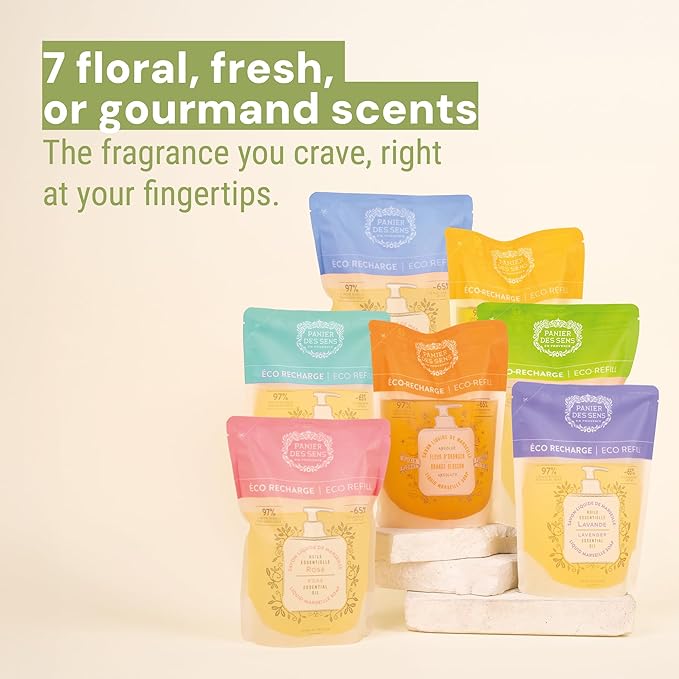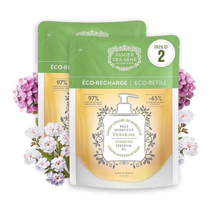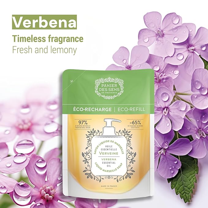 Panier des Sens - Liquid Hand Soap Refills - Verbena Foaming Hand Soap Refill - French Moisturizing Hand Wash with Coconut Oil - Kitchen & Bathroom- 97% Natural - 34 Fl.oz