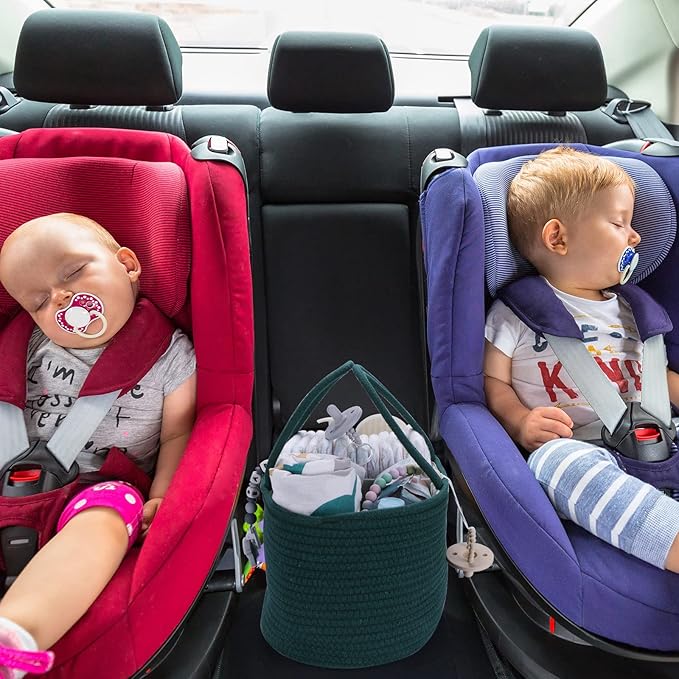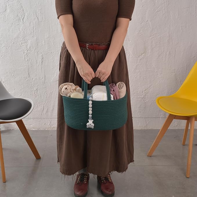 Baby Diaper Caddy Organizer for Girl Boy Rope Nursery Storage Bin Basket Portable Holder Tote Bag for Changing Table Car Travel Baby Shower Gifts Newborn Essentials Registry Must Have Items Dark Green