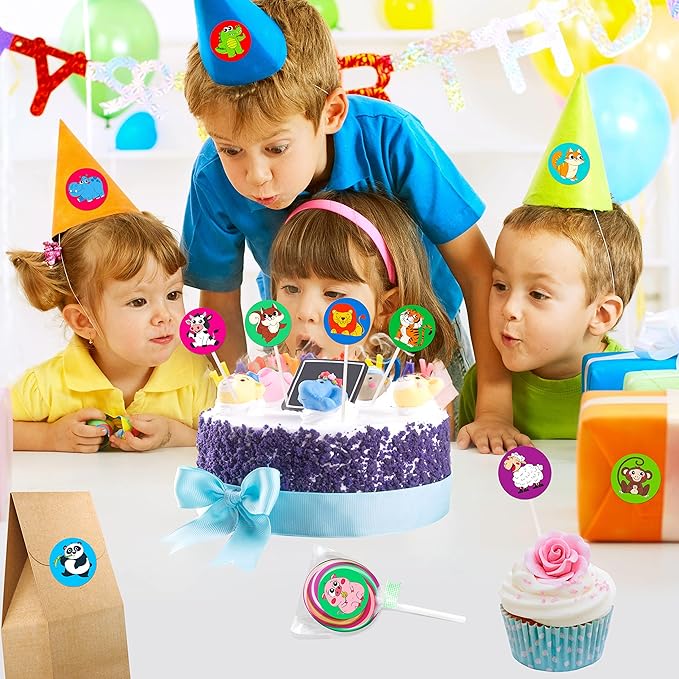 - High Quality! 16 bright and colorful animal designs attract children's attention at the first glance, made from photo-grade paper with permanent adhesive, sticks great and not easy to fall off. A must-have piece for decorating birthday parties or invitation cards.