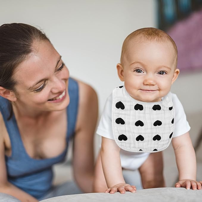 - Soft Material: Our baby bibs are made of pure cotton muslin, which is light and breathable. More importantly, this soft material will make your baby feel comfortable.
