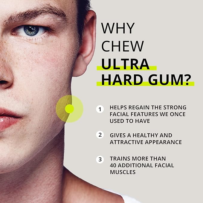 - The chewing gum for an attractive jawline: Train your entire facial muscles with the world's first fitness chewing gum. Simulate hard chewing with the hardest Natural gum in the world and enjoy the positive effect of a well-trained and defined jawline