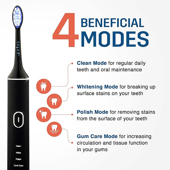 SPARX - Toothbrush Replacement Heads, Brush Heads with Blue Light Therapy for Gum Care, Replacement Brush Heads, Black, 1 Pack