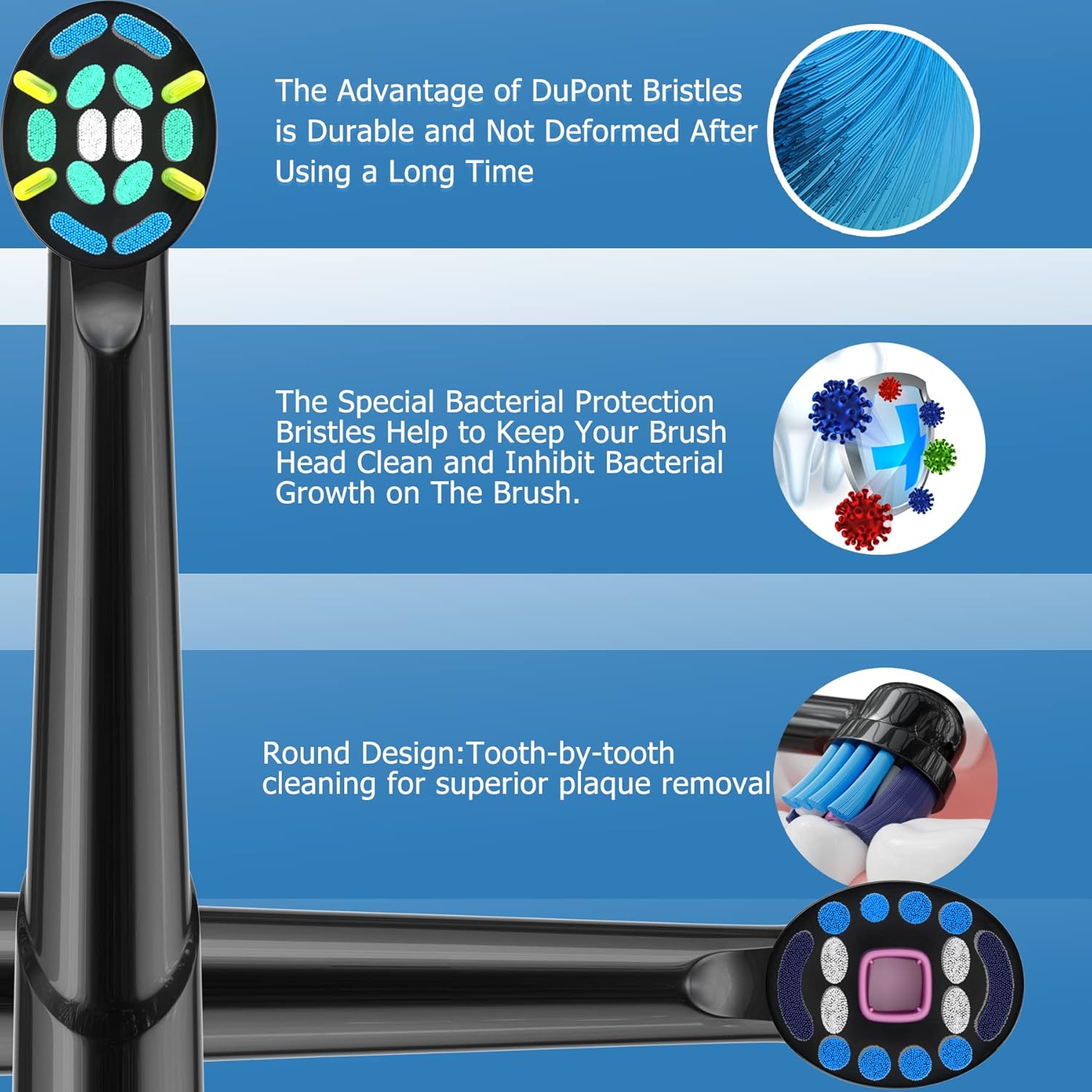 - Professional care-made of soft and flexible DuPont Tynex bristles, which are healthier for your teeth and gums. The toothbrush replacement head is inspired by the excellent cleaning ability of professional dental tools. Installation and disassembly are easy. When your head fades, remove the old head and attach the new replacement head to the electric toothbrush handle.