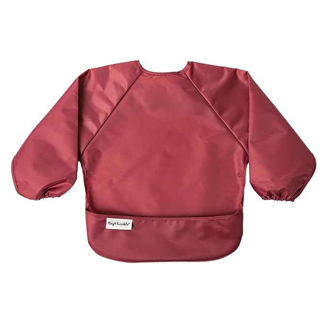 Tiny Twinkle Long Sleeve Bib for Babies & Toddlers – 2 Pack Waterproof Smock Bibs for Eating – Machine Washable & Mess-Proof, Baby Feeding Essential & Shower Must-Have (Rose Burgundy,6–24M)