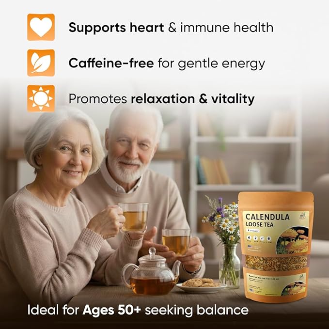 Calendula Loose Tea – 4 oz Size - Marigold & Dried - Calendula Tea Bulk Flowers Gluten-Free and Caffeine-Free Herbal tea for Relaxation, Wallness, From Real Flowers with Smooth Taste