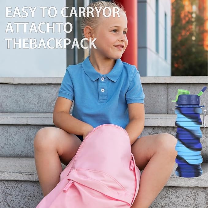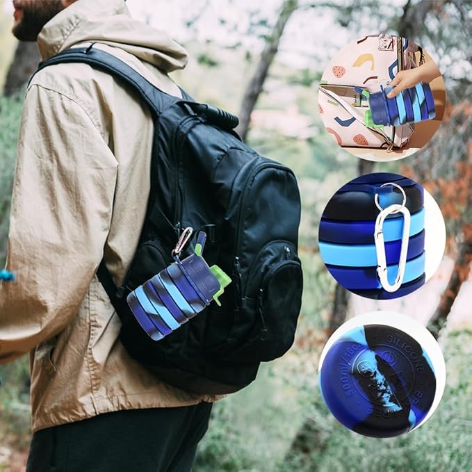 - [Great Outdoor Companion]: The unbreakable, flexible and reusable water bottle is equipped with an aluminum alloy carabiner. You can hang it on a backpack or gym bag and take it with you. Very practical, suitable for traveling, hiking, camping, exercising, traveling, cycling, running, fishing, climbing, etc.