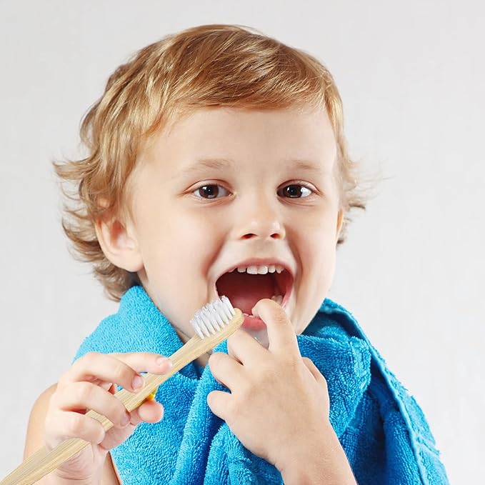 SEVENHEAD 10 PCS Kids Bamboo Toothbrushes Soft Bristles Wooden Toothbrushes, Natural Biodegradable BPA Free Eco Friendly Toothbrushes White