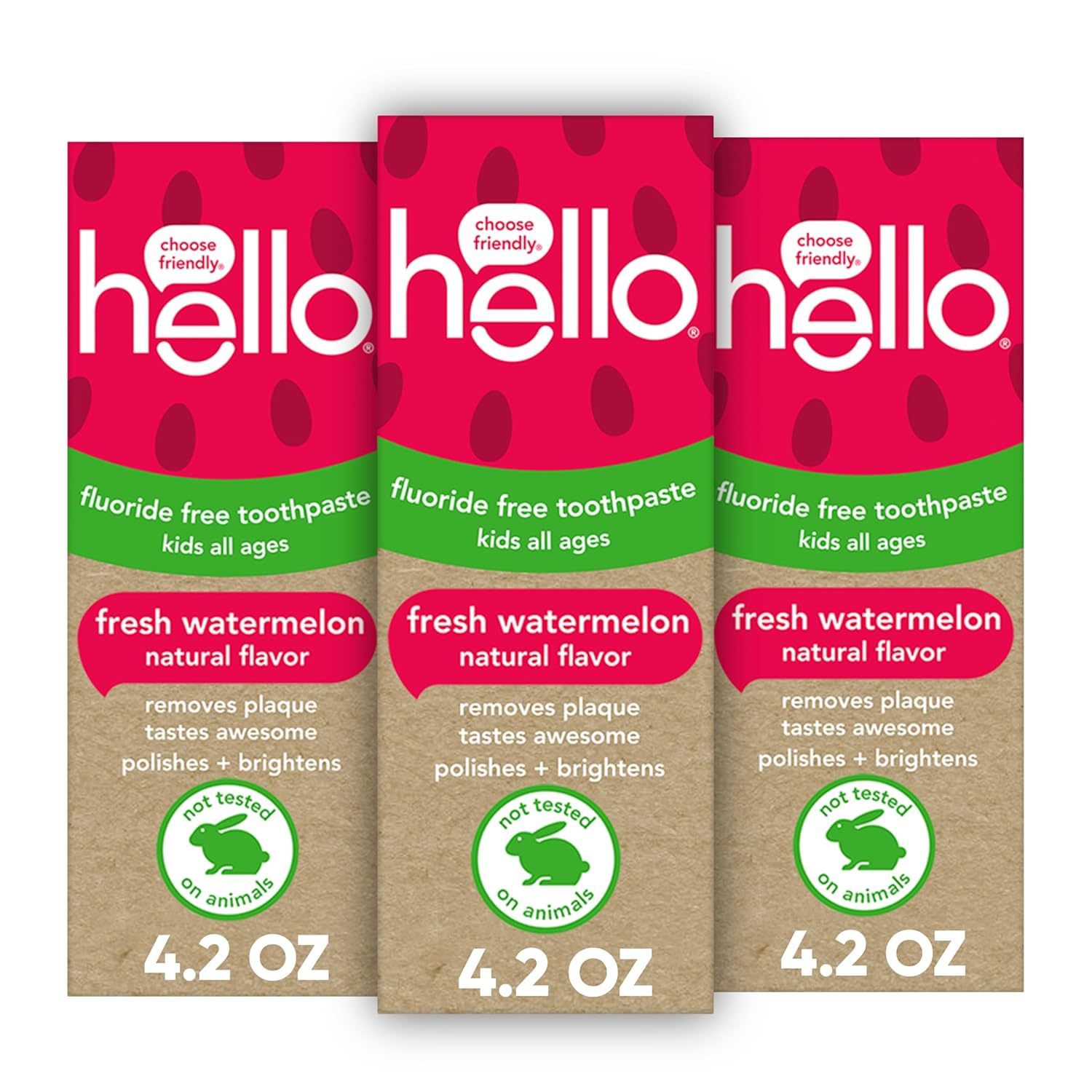 - WHAT I’M GETTING: Includes three (3) 4.2 oz tubes of hello Fresh Watermelon Fluoride Free Kids Toothpaste