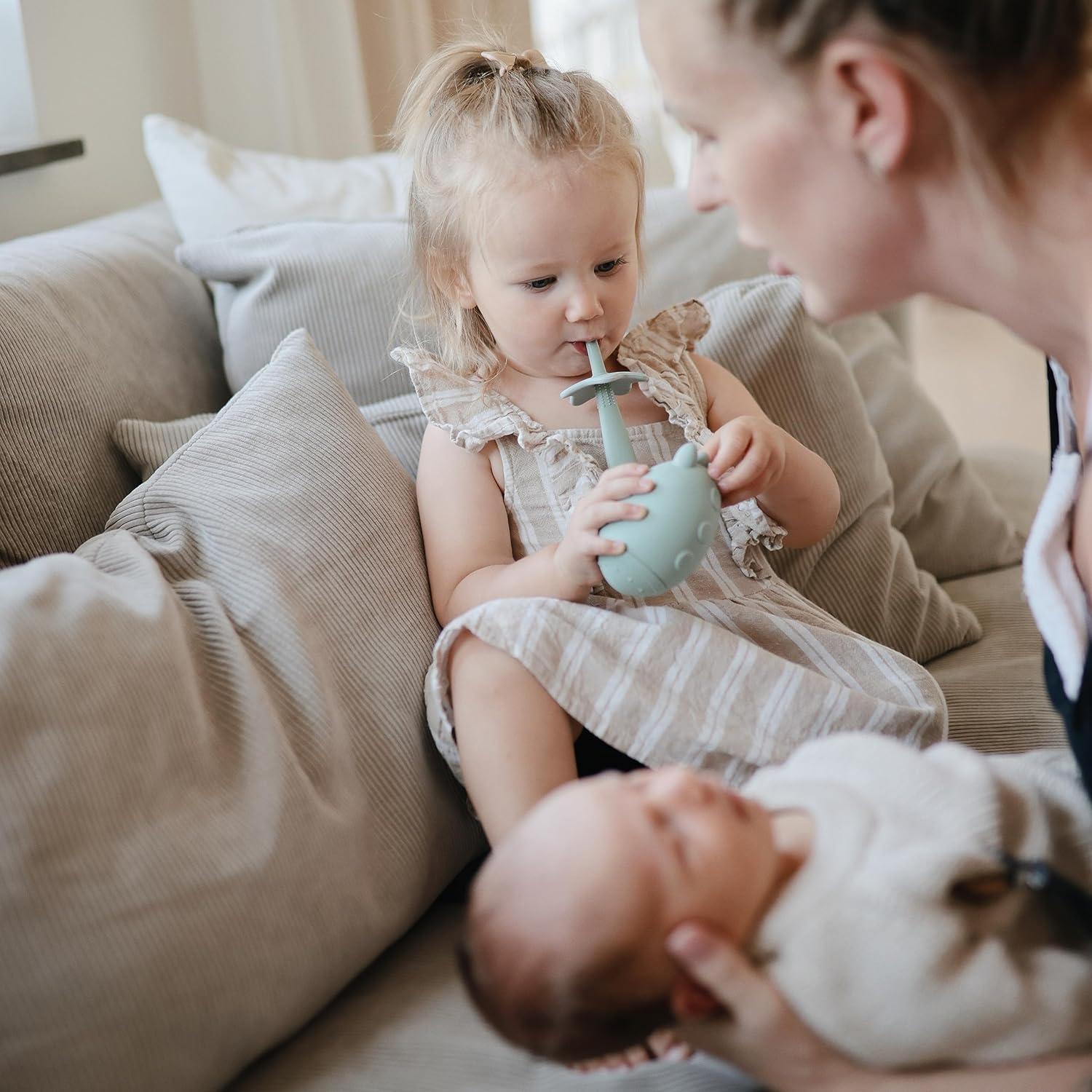 - Made from 100% food grade silicone, this toothbrush is designed with super soft bristles that gently clean and stimulate your little one's gums and teeth.