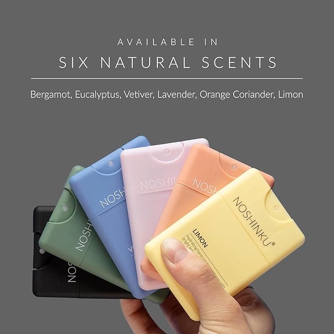 Noshinku - Refillable Hand Sanitizer Bergamot 3-Pack, Travel Size Spray with Hydrating Botanical Oils, Natural Ingredients, All Natural Fragrances, Sugarcane Derived Alcohol, No Parabens, No Dyes