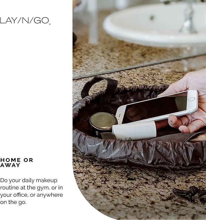 - FAST CLEANUP, NO MESS: Lay flat to instantly access all your makeup, then cinch closed for effortless cleanup – no more digging through cluttered bags or bathroom counters.