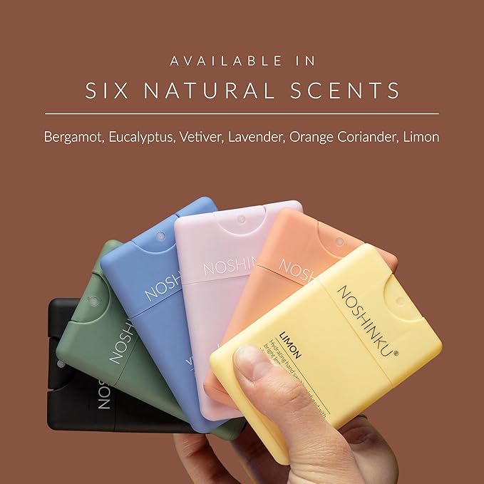 Noshinku - Refillable Hand Sanitizer Orange Coriander 3-Pack, Travel Size Spray, Hydrating Botanical Oils, Natural Ingredients, All Natural Fragrances, Sugarcane Derived Alcohol, No Parabens, No Dyes