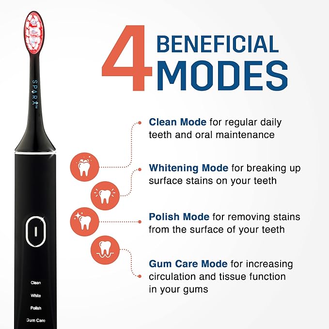 - Red Light Therapy - Our toothbrush head replacement goes beyond cleaning your teeth. The red light helps improve gum health, fighting gum disease and improving blood circulation.