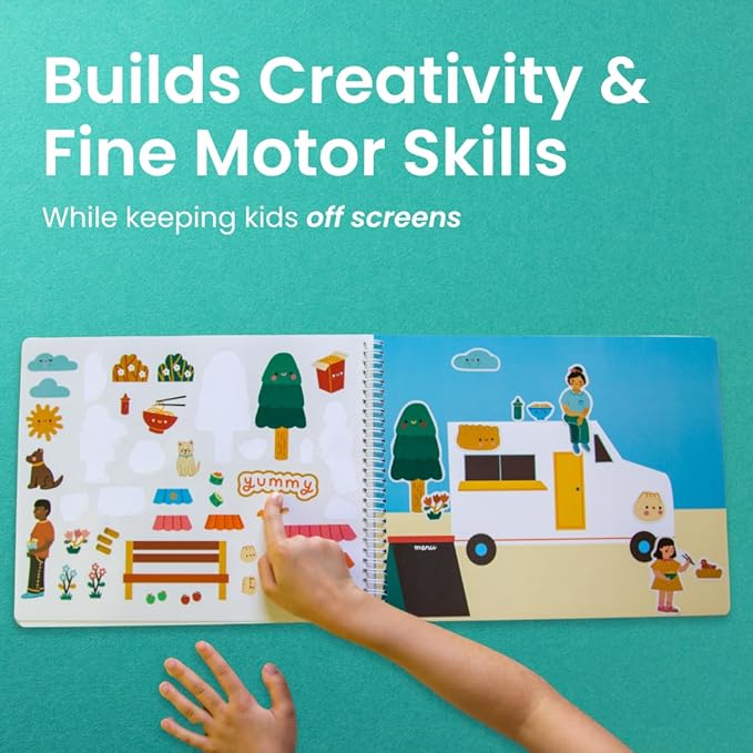 - On the go fun: Keep kids busy while traveling with independent, quiet, screen-free fun. Our lay-flat sticker activity books make the best plane travel essentials for toddlers, create the perfect mess-free crafts for car road trips with little ones, and keep kids entertained at restaurants. Leave the tablet at home and let their imaginations soar on your next family adventure.
